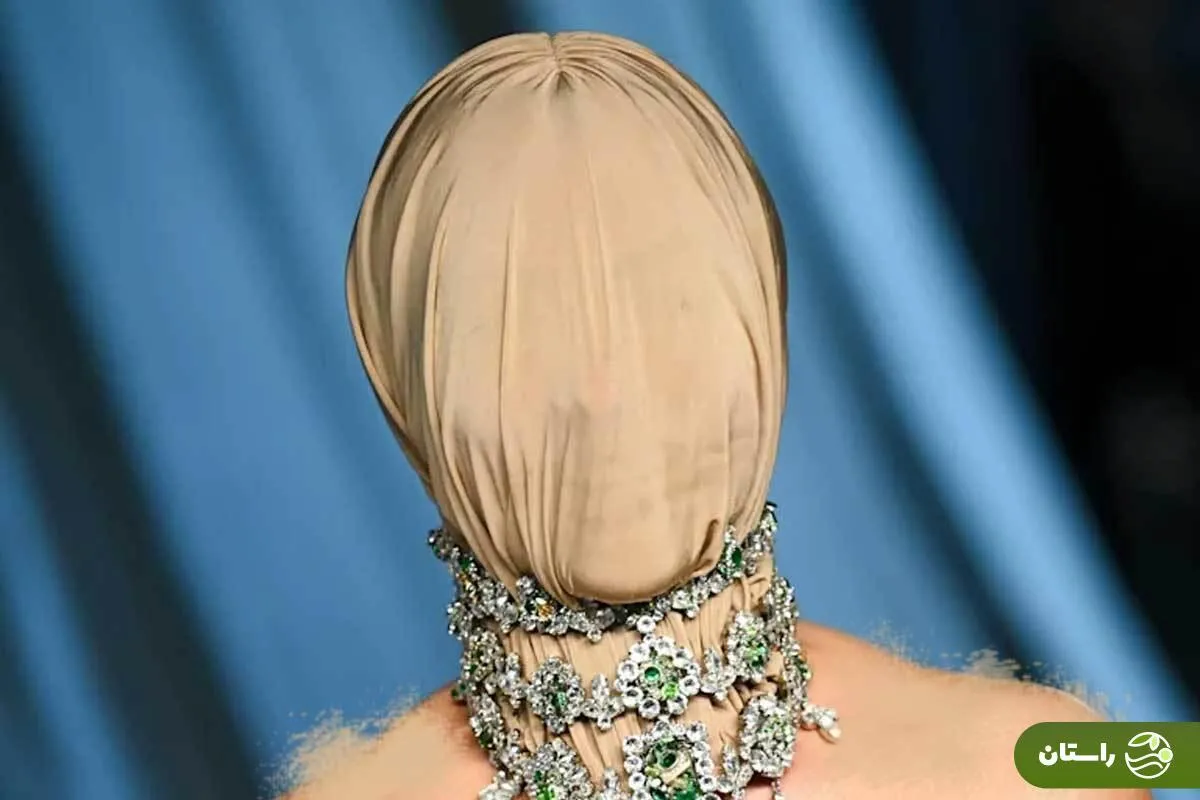 به گزارش راستان، او علاوه بر ماسک، یک گردنبند بزرگ و یک لباس تک رنگ عجیب پوشید.