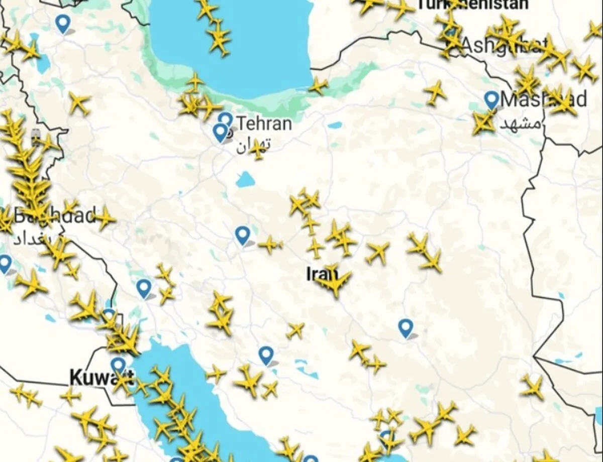 ۷ پرواز از بین ۵۰ پرواز حال حاضر در حال عبور از آسمان غرب ایران هستند.