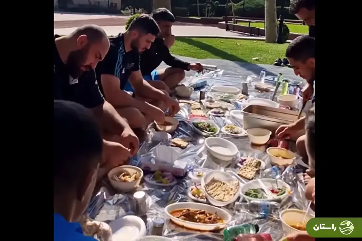 (ویدئو) آبگوشت خوری قهرمانان کشتی آزاد در محوطه کمپ تیم ملی