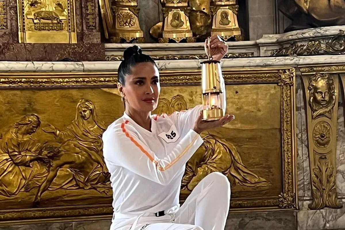 راستان | سلما هایک بازیگر مشهور، مشعل المپیک ۲۰۲۴ پاریس را در کاخ ورسای حمل کرد.