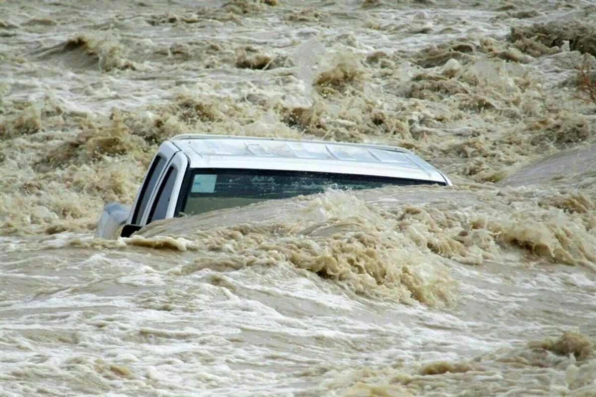 تصویر عجیبی از مینی‌بوس پر از مسافر که در سیل بندرعباس گیر افتاد!
