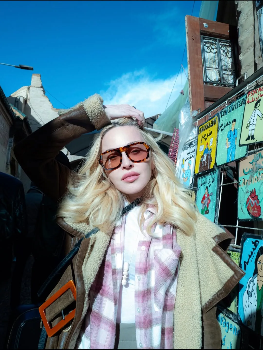 در بخشی از تصاویر، مدونا با پوششی زمستانی ــ پالتوی خز در کنار کیف و کلاه حصیری ــ در بازارهای محلی پر از کالاهای چرمی دیده می‌شود. مجموعه عکس‌ها همچنین به مهمان‌نوازی شناخته‌شده مراکشی اشاره دارد؛ از صحنه نوشیدن چای نعنا گرفته تا جزئیات چشمگیر معماری، شامل کاشی‌کاری‌های هندسی، دیوارهای گچ‌بری‌شده، سقف‌های طاقی و فضاهای نشیمن مجلل.