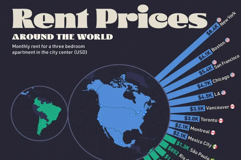 شهرهای ایالات متحده در صدر فهرست گرانترین شهرهای جهان از نظر اجاره مسکن قرار دارند. نیویورک با اختلاف قابلتوجهی در رتبه نخست ایستاده و میانگین اجاره ماهانه در آن از ۸٬۳۰۰ دلار فراتر رفته است.