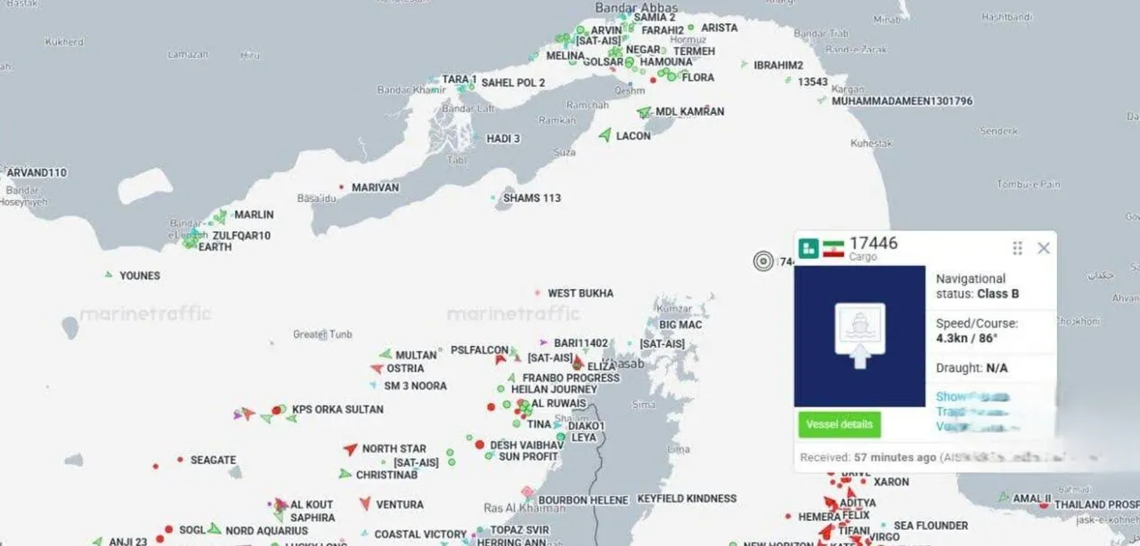به گزارش صابرین، تصویری از وضعیت تنگه هرمز در سحرگاه امروز را ببینید که تنها شناوری که در حال حاضر در وسط تنگه قرار دارد متعلق به جمهوری اسلامی ایران است.