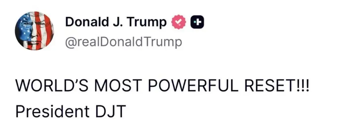 رئیس جمهور آمریکا در تازه‌ترین پست خود در شبکه اجتماعی تروث سوشال، پیامی مبهم منتشر کرد. دونالد ترامپ نوشت: «قدرتمندترین بازنشانی (ریست) جهان!»