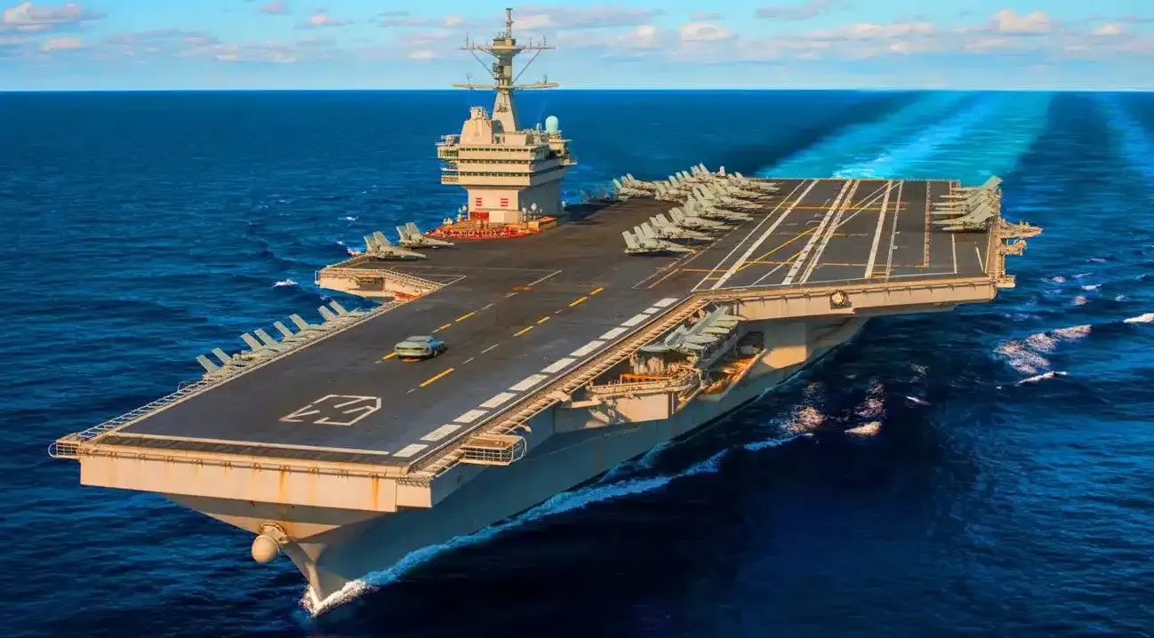 صابرین نیوز تصویری از ناو هواپیمابر جرالد فورد در حال تمرین مقابله با موشک با استفاده از مانور سنگین U در دریای سرخ را منتشر کرد.