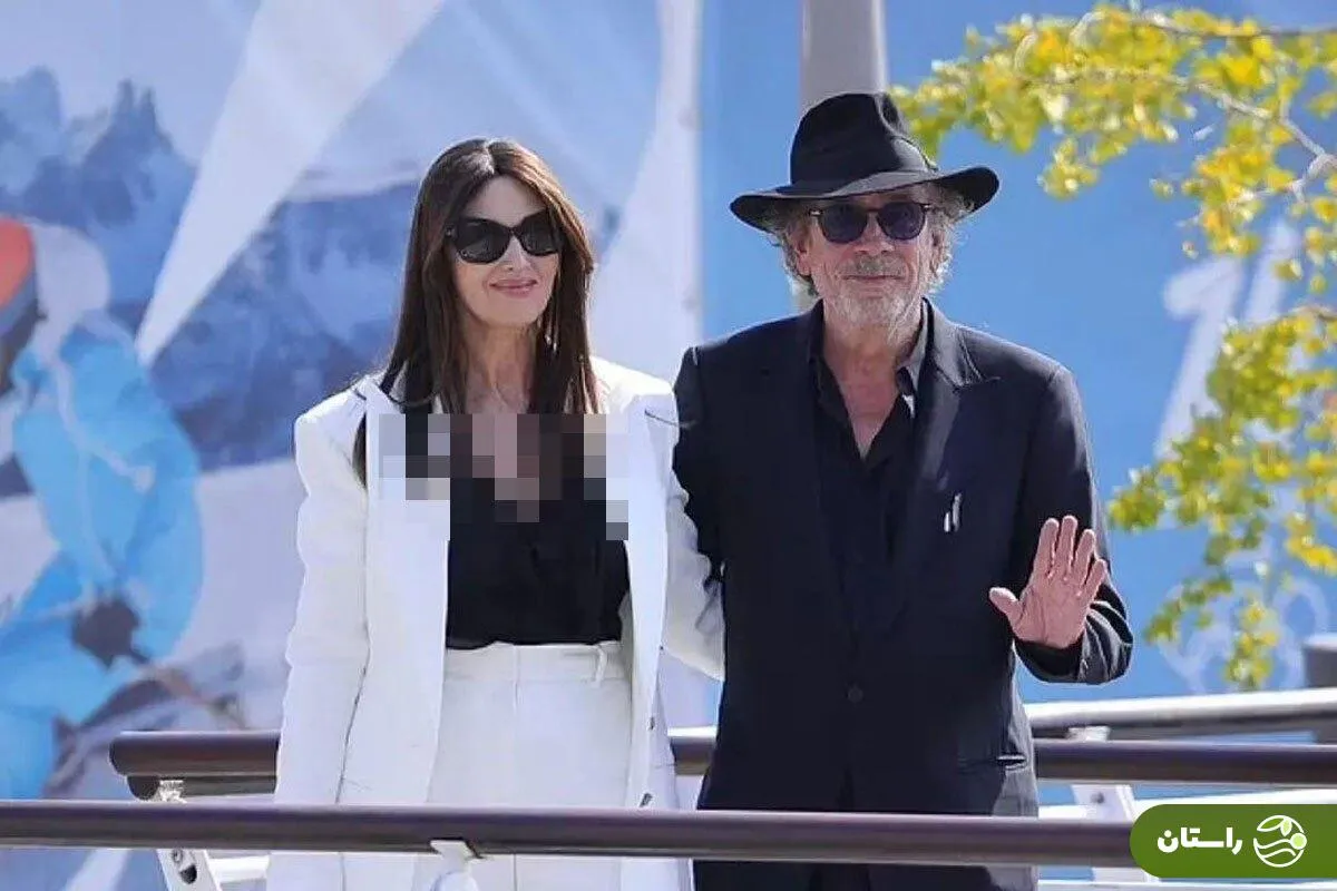 راستان | مونیکا بلوچی مدل و بازیگر ایتالیایی که در آستانهی ۶۰ سالگی قرار دارد تمروز در کنار نامزدش تیم برتون در ونیز جلوی دربین خبرنگاران آمد.