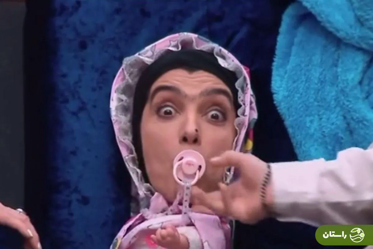 در این بخش الیکا عبدالرزاقی نقش یک کودک را بازی میکند، نرگس محمدی به او پستانک می دهد او پستانک را نمیخواهد، در میانه این اتفاقات الیکا عبدالرزاقی در نقش کودک آروغ هم میزند!