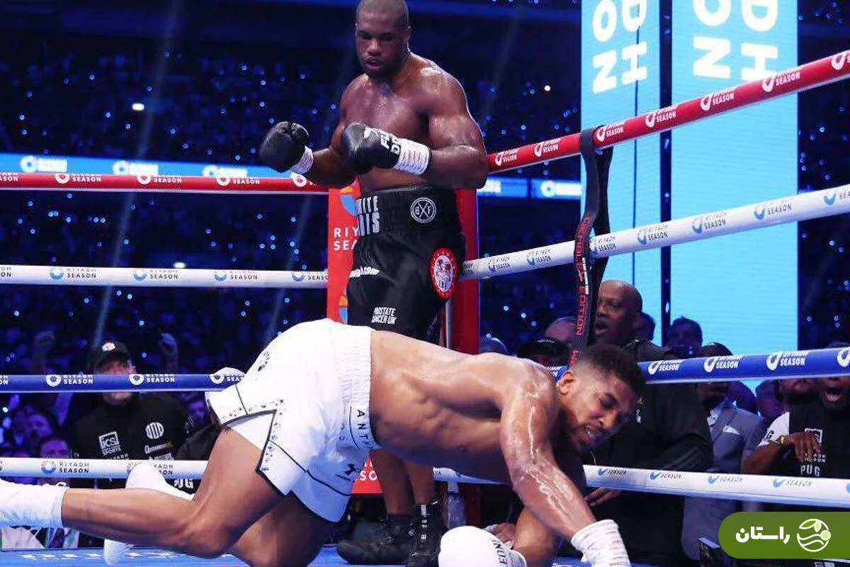 راستان | دانیل دوبوا موفق شد آنتونی جاشوا، ستاره بوکس بریتانیا را در راند پنجم شکست دهد تا از عنوان قهرمانی سنگین وزن IBF خود دفاع کند.