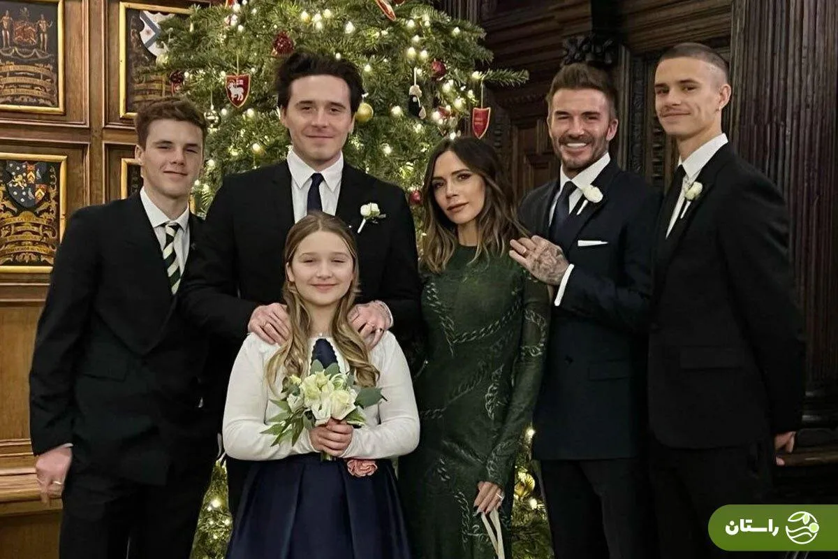 پسر بزرگترشان بروکلین ۲۵ ساله و همسرش نیکولا ۲۹ ساله در این عکس حضور نداشتند اما هنگام مراسم به بقیه خانواده پیوستند.
