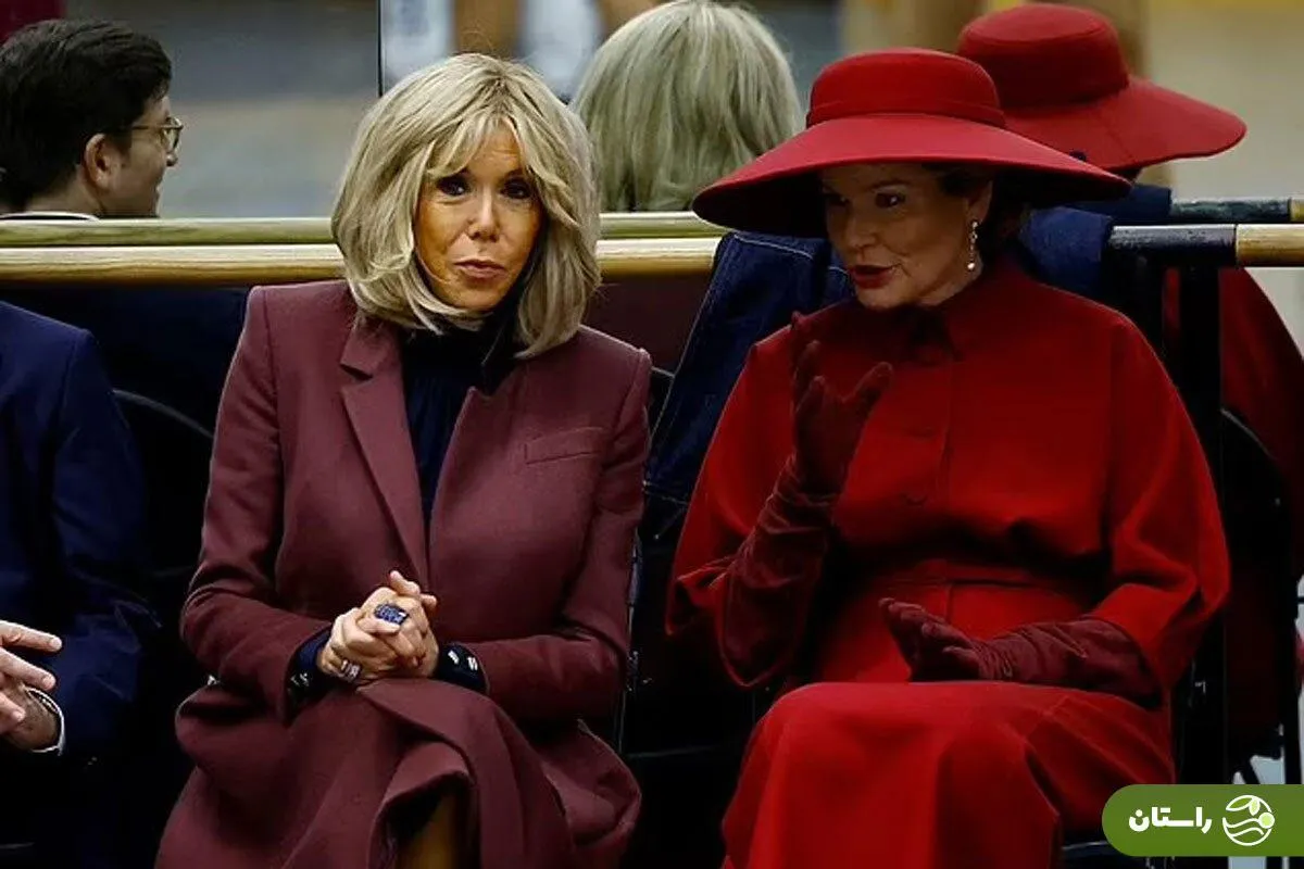 در کنار او، بریژیت مکرون با پوشیدن پالتویی به رنگ بادمجانی پاستلی که از سایههای روشن و گرم پاییزی بود، ظاهر کلاسیک همیشگی خود را داشت.