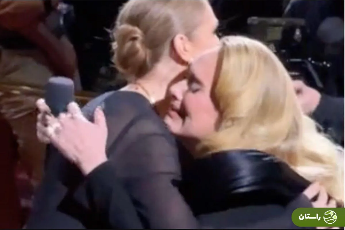 به گزارش راستان، در ویدیویی که در شبکههای اجتماعی به سرعت پخش شد، ادل با دیدن سلین دیون در میان جمعیت، اشک در چشمانش حلقه میزند. او، با لباسی شیک و مشکی، لحظهای مکث میکند و از روی موانع به سمت دیون میرود تا او را در آغوش بگیرد. دیون نیز با بوسیدن دست ادل محبتش را ابراز میکند و سپس سر جای خود مینشیند و با دستمال اشکهایش را پاک میکند.