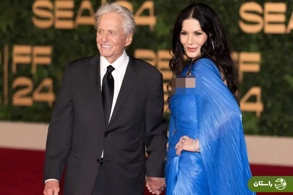 راستان |‌ کاترین زتا جونز در مراسم افتتاحیه چهارمین دوره جشنواره بین‌المللی فیلم دریای سرخ ۲۰۲۴ در جده، عربستان سعودی، با لباسی از طراح مد مصری، مرمر حلیم، در کنار همسرش مایکل داگلاس بر فرش قرمز ظاهر شد. این پیراهن آبی چین‌دار با شنل، به‌صورت اختصاصی برای او طراحی‌شده بود و به زیبایی، وقار همیشگی این بازیگر را به نمایش گذاشت.