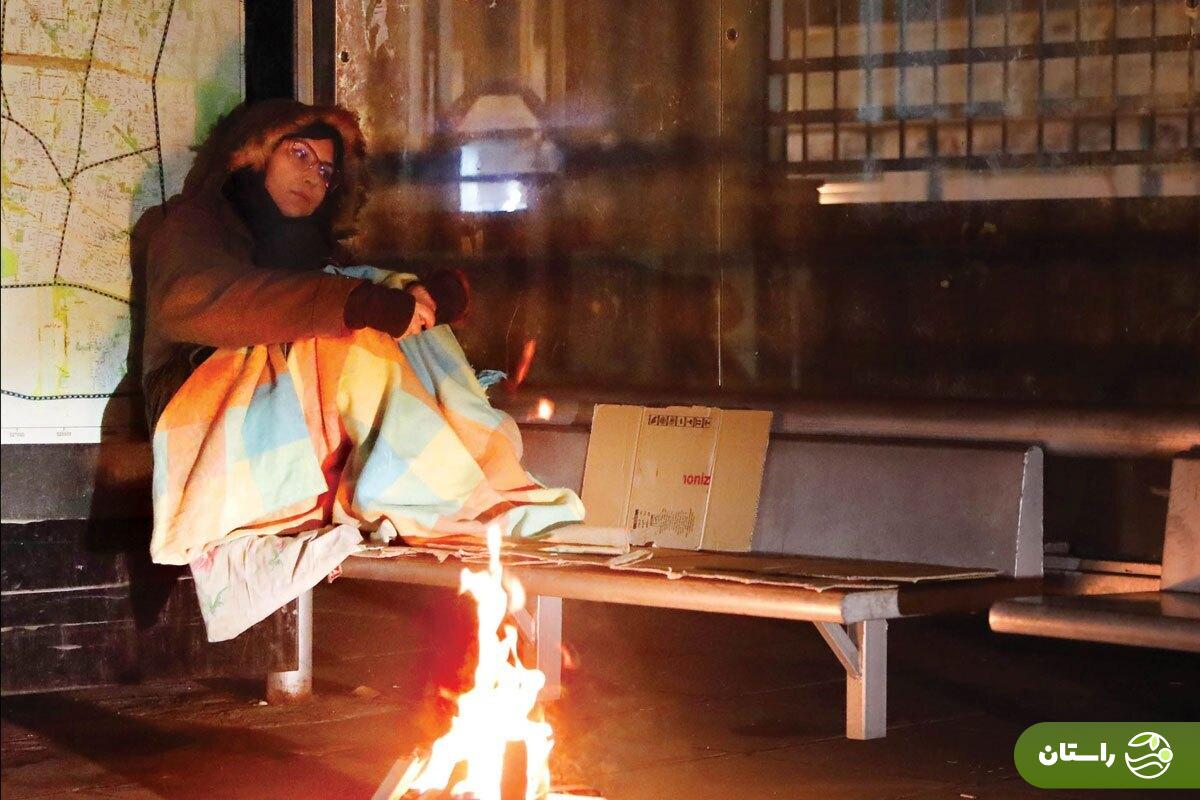 ساعت ۱۲:۳۰ است و حالا دیگر شعلههای آتش جان گرفته و در یکسو من در ایستگاه اتوبوس نشستهام مقابل چشمانی که گاه بیتفاوت از کنارم میگذرند و گاه با کنجکاوی مینگرند و سری با حالت افسوس تکان میدهند و دور میشوند، در سوی دیگر همکارانم هستند که با سامانه ۱۳۷ تماس میگیرند و موضوع کارتنخوابی یک زن تنها در ایستگاه اتوبوس را گزارش میدهند. پیام آنها ثبت میشود و شماره پیگیری برایشان پیامک. درونم تناقض بیگانه و ترسناکی نجوا میکند که نکند نیایند و نکند در این سرما بمانم. نکند... . در همین حین در گوشم اعلام میکنند بعد از تماس مجدد با سامانه ۱۳۷ اپراتور برای زودتر به نتیجه رسیدن یک شماره دیگر به آنها داده است.