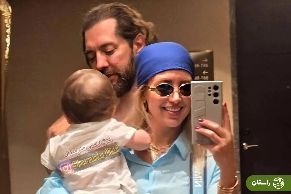 عکس جدید مینا مختاری همسر بهرام رادان و فرزندشان جان را می‌بینید.‌