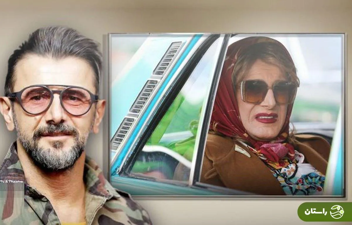 امین حیایی در لباس زنانه در کنار همسرش در فیلم مزاحم