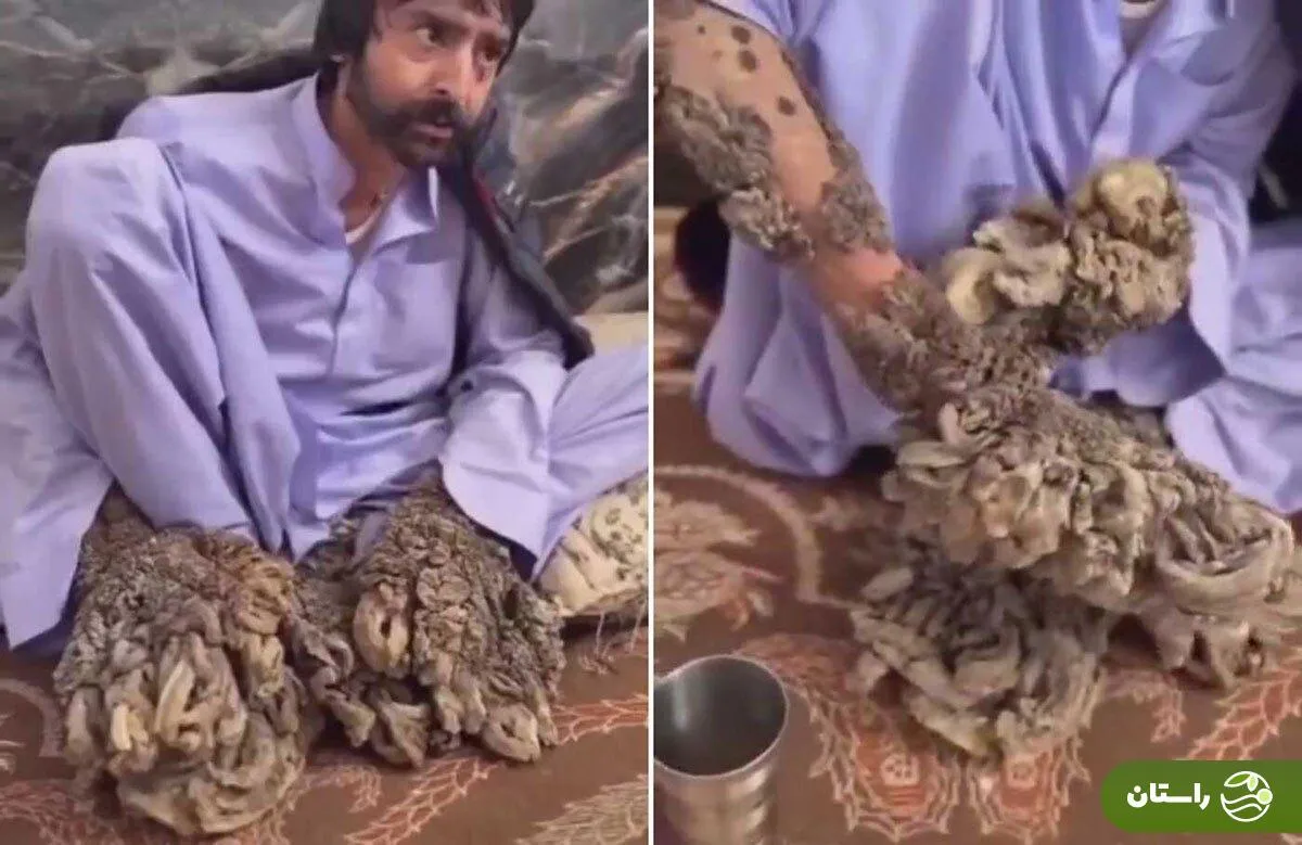 راستان | عبدالنصیر، شهروند ۳۵ ساله اهل شهر خاش در سیستان و بلوچستان دچار بیماری «اپیدرمودیسپلازی ورموسیفورم» یا بیماری «مرد درختی» شده است. بیماری نادری که فقط ۶۰۰ مورد ابتلا به آن در جهان ثبت شده است.