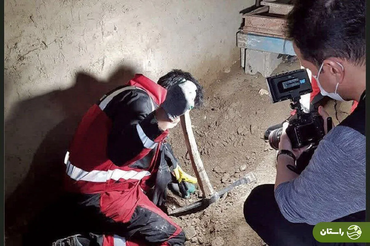 ساعتی بعد آتشنشانان بیادعا چند مکان دفن احتمالی جسد را بررسی کردند و در نهایت با همکاری متهم به قتل موفق شدند محل دقیق دفن جسد را بیابند. بعد از حفر گوشهای از انبار، بقایای جسد و جمجمهای که سوراخی در آن وجود داشت، از دل خاک بیرون کشیده شد و بدین ترتیب معاینات پزشکی نیز در محل کشف جسد ادامه یافت تا اینکه مشخص شد سوراخ روی جمجمه بر اثر ضربه نوکتیز کلنگ ایجاد شده است.