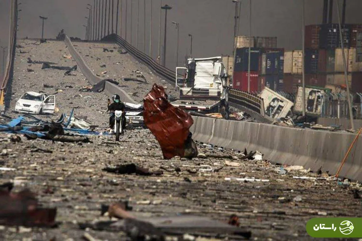 او میگوید: «وقتی لیفتراک به یکی از کانتینرها برخورد کرد، جرقهای ایجاد شد و پس از حدود دو دقیقه، آتش به کانتینر مجاور سرایت کرد و انفجار رخ داد. تلاش کردم کارگران را از انبار بیرون بکشم، اما شدت حرارت باعث شد کانتینرهای ردیفی یکی پس از دیگری منفجر شوند. شدت انفجار آنقدر زیاد بود که من حدود ۲۰ متر پرت شدم.» او می گوید محتوای کانتینر گوگرد بوده است.