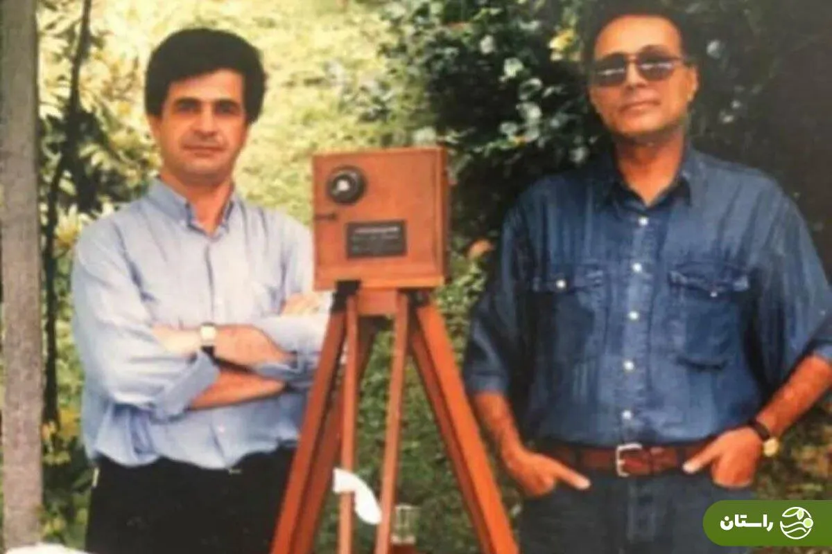 راستان | ساسان توکلی فارسانی، عکاس سرشناس با انتشار این تصور نوشت: سلفی با عباس کیارستمی و جعفر پناهی، در حال اجرای اثر چیدمانی «باغ بی‌برگی» برای نمایشگاه «باغ ایرانی» در موزه هنرهای معاصر تهران - شهریور ۱۳۸۳ .چهار آینه بزرگ اطراف این کار نصب شده بود، و این عکس رو هم از یکی از همون آینه‌ها گرفتم.