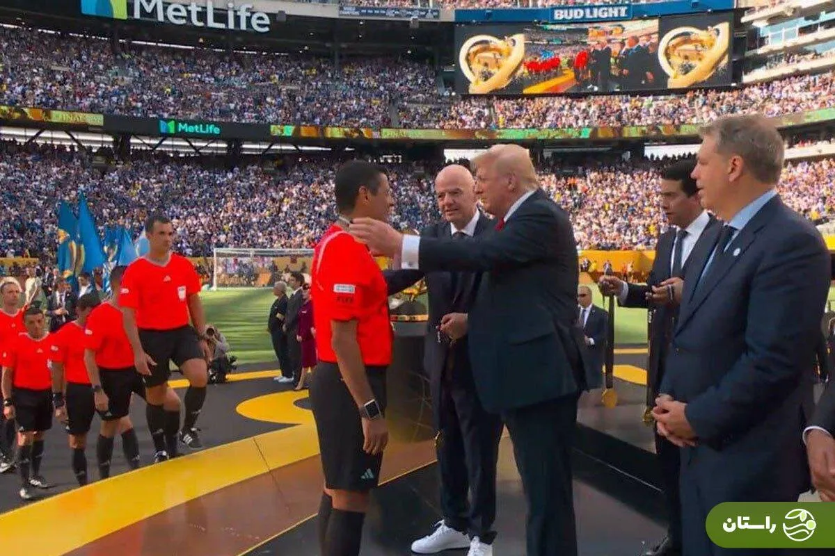 راستان | امشب چلسی با برتری ۳ بر صفر مقابل پاریسنژرمن به مقام قهرمانی جام جهانی باشگاهها رسید و اولین تیمی شد که به این عنوان دست پیدا میکند. قضاوت این بازی برعهده علیرضا فغانی بود و با توجه به حضور دونالد ترامپ، رییس جمهور آمریکا در ورزشگاه، این ۲ نفر در جشن قهرمانی هم با یکدیگر برخورد داشتند و فغانی از دست ترامپ مدالش را گرفت.