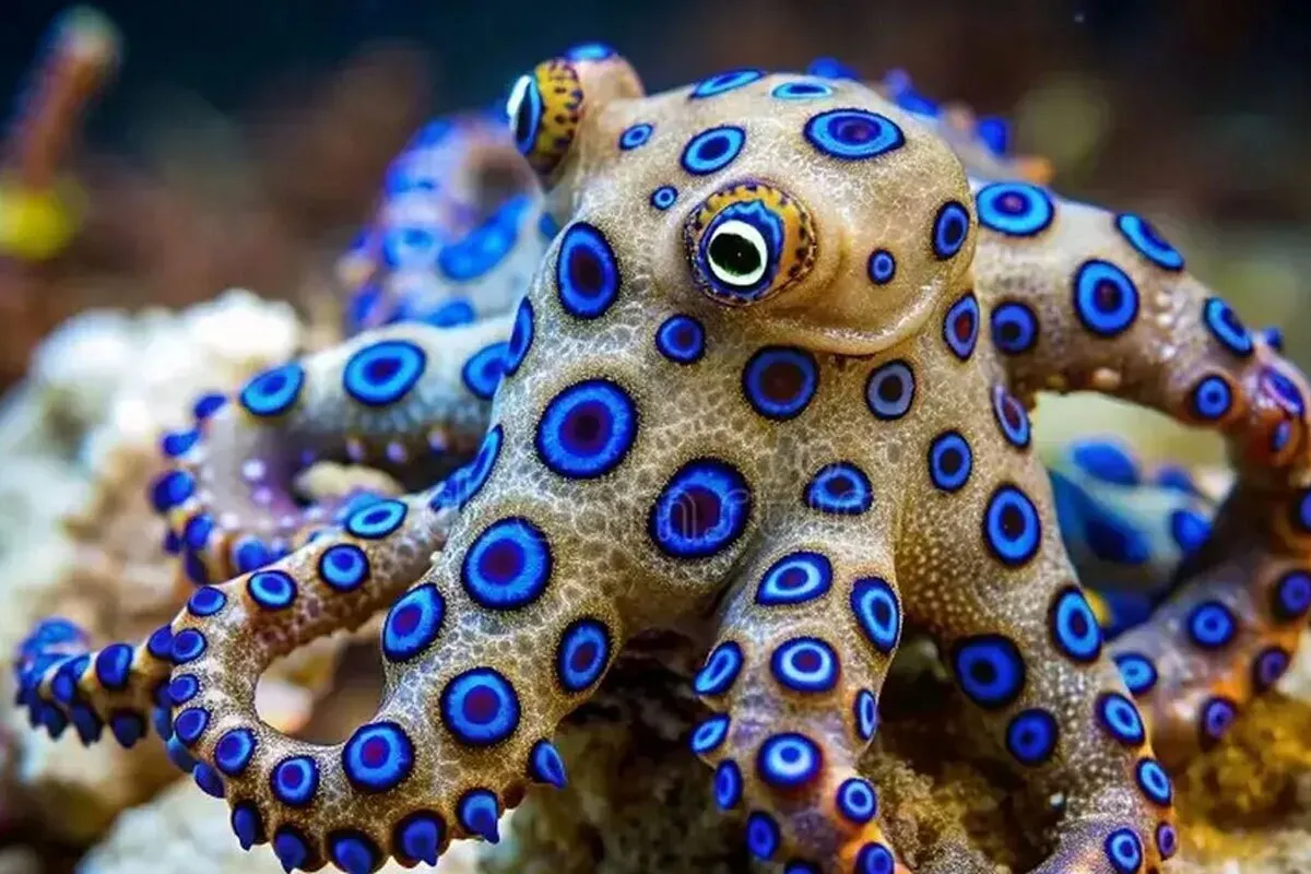 راستان | این اختاپوسهای کوچک، مادهای به نام تترودوتوکسین در بدن خود دارند؛ یک نوروتوکسین بسیار قوی که سیستم عصبی را فلج میکند. این سم در ماهی بادکنکی (فوگو) نیز وجود دارد و اگر به درستی آماده نشود، خوردن آن میتواند مرگبار باشد. تترودوتوکسین ۱۲۰۰ برابر قویتر از سیانور است و تاکنون هیچ پادزهری برای آن کشف نشده است.