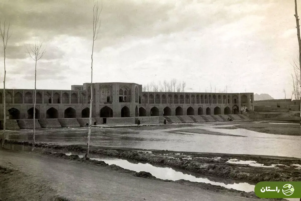 عکس | تونل زمان؛ چند ناشناس با خودرو کنار پل خواجو اصفهان؛ ۹۵ سال پیش