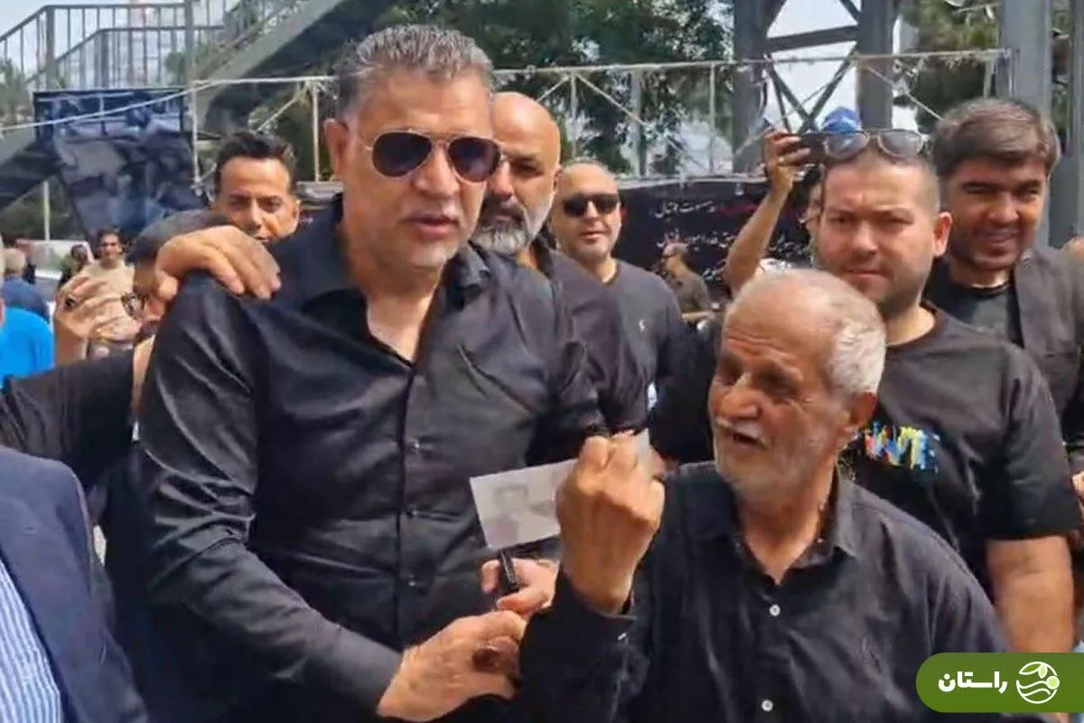 ویدئو | استقبال گرم از علی دایی در مراسم ختم زنده‌یاد داریوش مصطفوی