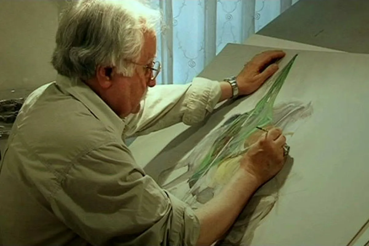 ۳ عکس از آرشیو موسسه اطلاعات تماشا کنید که استاد فرشچیان را در سال ۱۳۵۵ در منزل هنگام کار نشان می‌دهد.