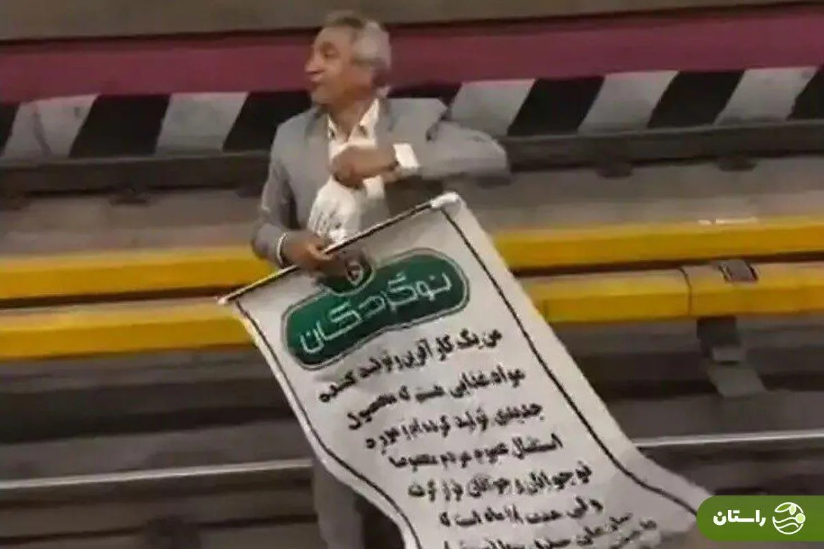راستان | مردی که خود را تولیدکننده مواد غذایی معرفی کرده، با در دست داشتن بنری در مترو فریاد اعتراض سر داد.