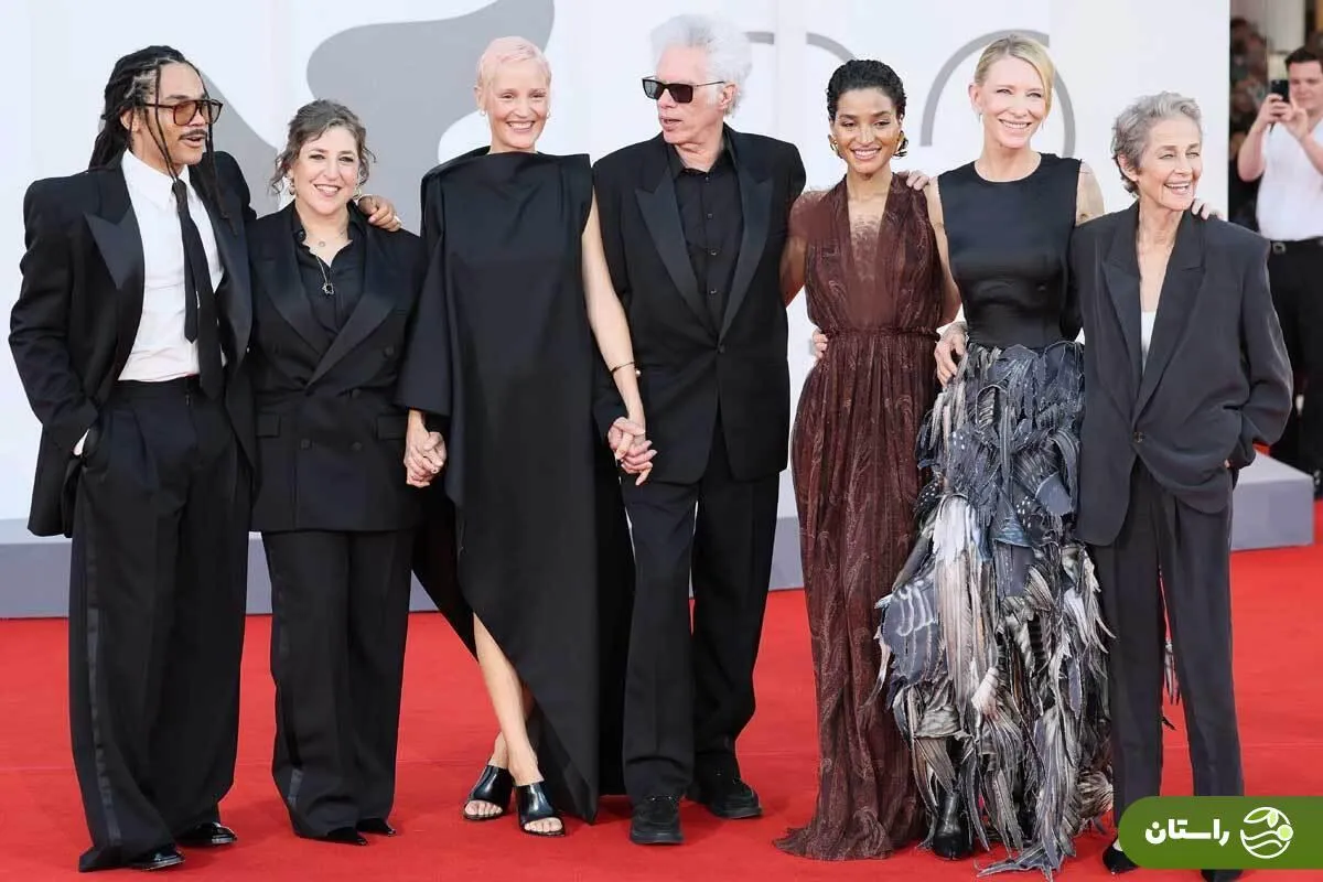 راستان| لوکا سابات (Luka Sabbat)، ماییم بیالیک (Mayim Bialik)، ویکی کریپس (Vicky Krieps)، جیم جارموش (Jim Jarmusch)، ایندیا مور (Indya Moore,)، کیت بلانشت (Cate Blanchett) و شارلوت راملینگ (Charlotte Rampling) در جشنواره ونیز برای فیلم «پدر مادر خواهر برادر» روی فرش قرمز آمدند.