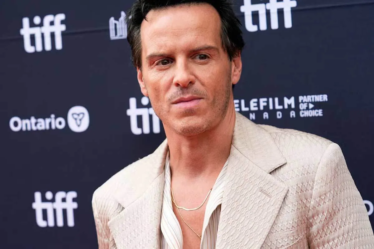 اندرو اسکات برای اولین نمایش جهانی «مرد مرده: رمز و راز چاقوها» در جشنواره بین المللی فیلم تورنتو در تئاتر پرنسس ولز در تورنتو، کانادا در روز شنبه، ۶ سپتامبر ۲۰۲۵ حضور یافت.
